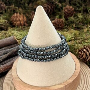Bracelet Hématite – perles rondes facettées (4 mm)