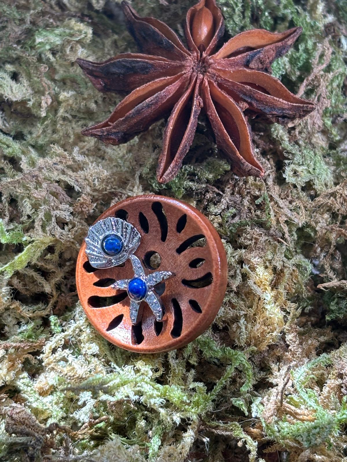 Boucles d’oreilles coquillage et étoile de mer en Lapis Lazuli, Argent S925