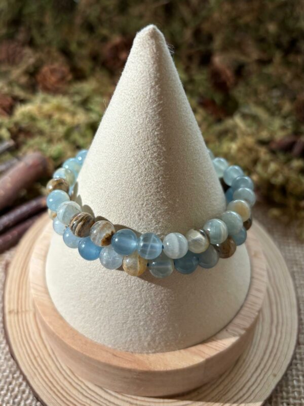 Bracelet Calcite Bleue à Bandes Jaunes (aussi appelée Onyx Bleu) – perles rondes (7 mm)