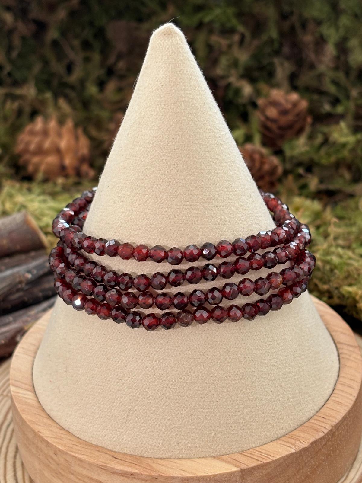 Bracelet Grenat – perles rondes facettées (4 mm)