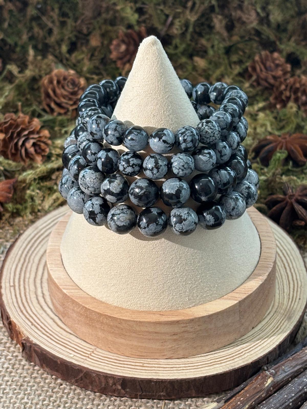 Ses petits flocons gris ne sont pas là par hasard : ils symbolisent l’équilibre entre l’ombre et la lumière. L’Obsidienne Flocon de Neige nous rappelle que même dans les périodes sombres, des éclats de clarté peuvent apparaître… comme de doux messages au creux du silence.