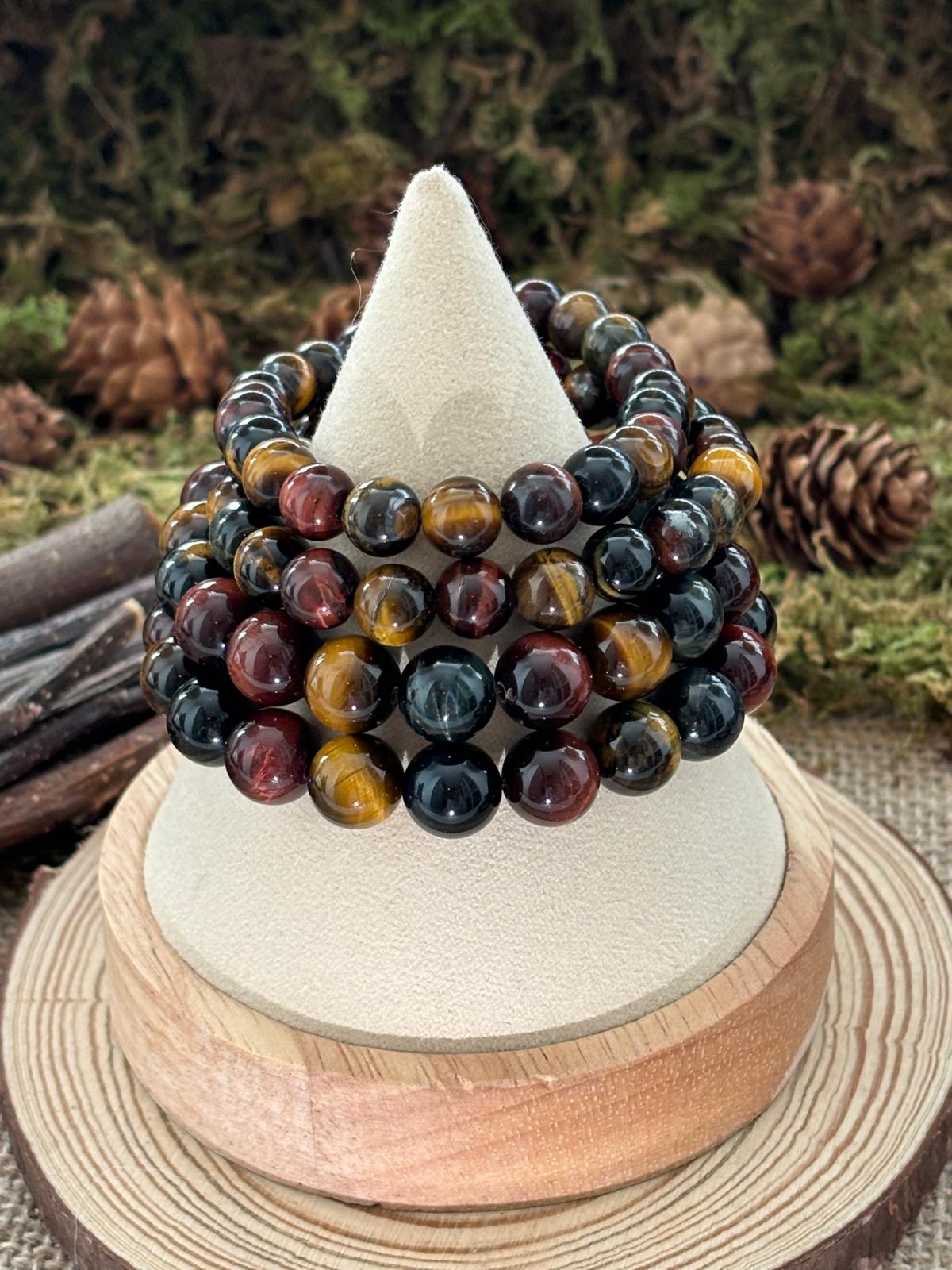Ce trio de pierres tire son nom des animaux qu’il évoque : la vision perçante du faucon, la puissance ancrée du taureau et la force protectrice du tigre. Porté ensemble, ce bracelet agit comme un totem personnel, prêt à te défendre, t’éclairer et t’élever. 🐾✨
