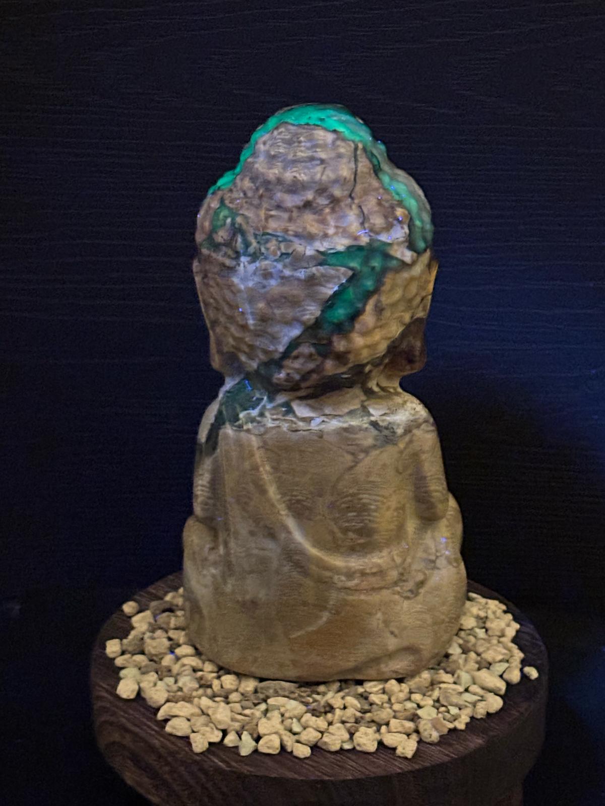 Bouddha en Agate Volcanique & Crâne Druzy, Réactif aux UV