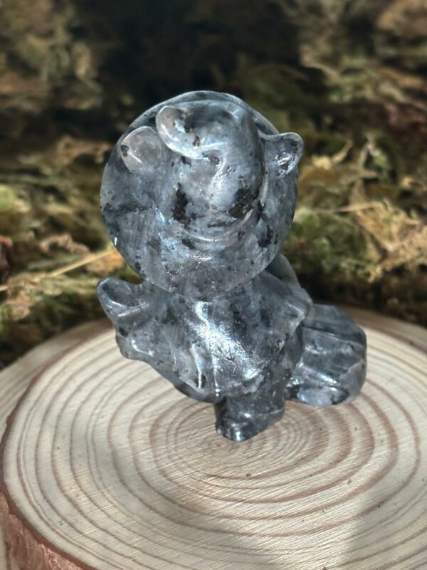 Son nom vient de la ville de Larvik, en Norvège, où elle a été découverte. Autrefois, les chamanes vikings l’utilisaient pour repousser les mauvais esprits et explorer les mondes subtils en toute sécurité. Aujourd’hui encore, ses magnifiques reflets bleus en font une pierre ornementale très prisée.