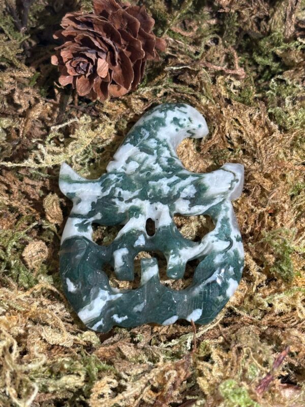 Les druides utilisaient l’Agate Mousse pour entrer en contact avec les esprits de la forêt. Elle permettait de trouver la sagesse cachée dans la nature et de protéger les récoltes contre le mauvais sort. 🌿