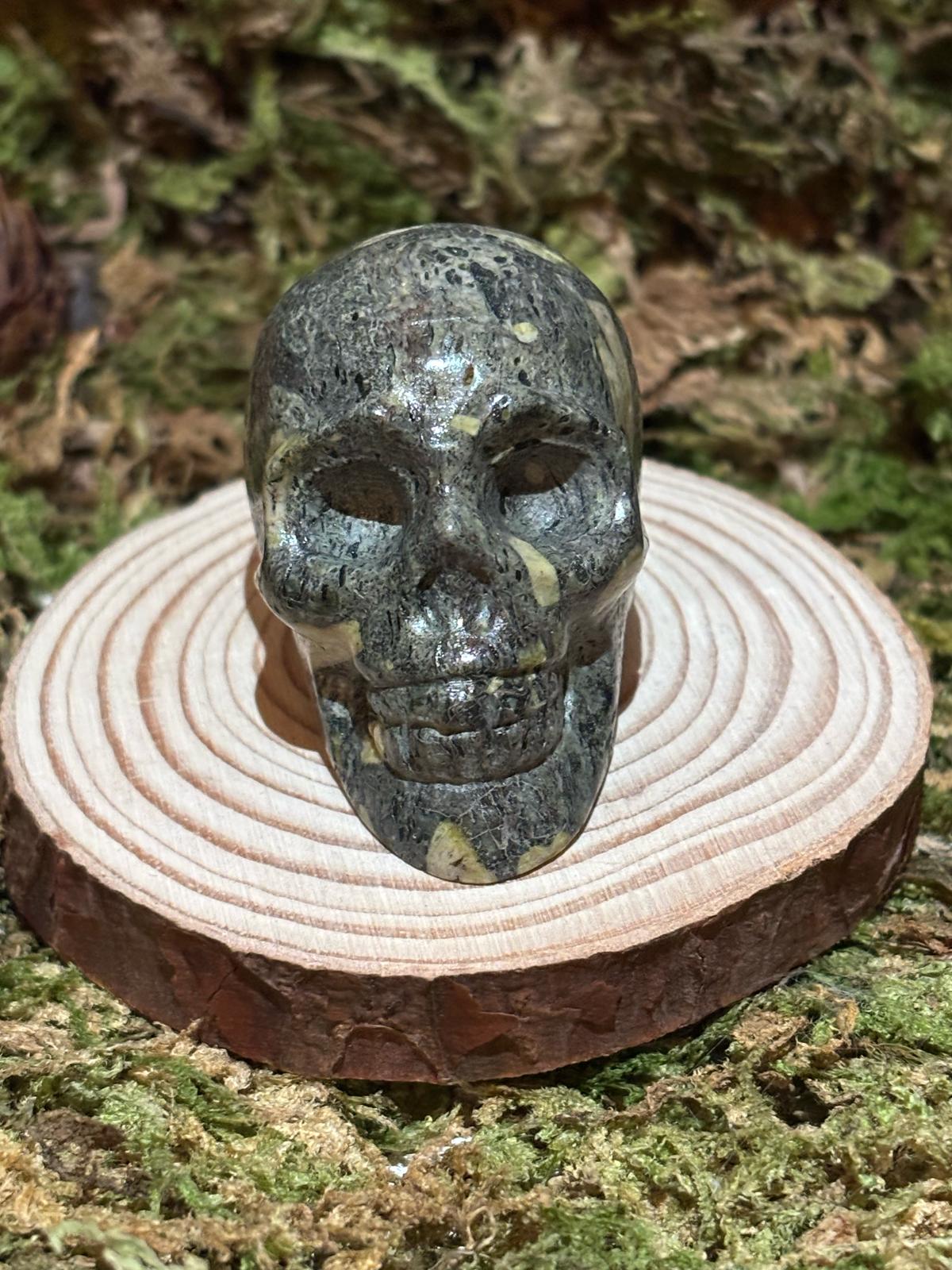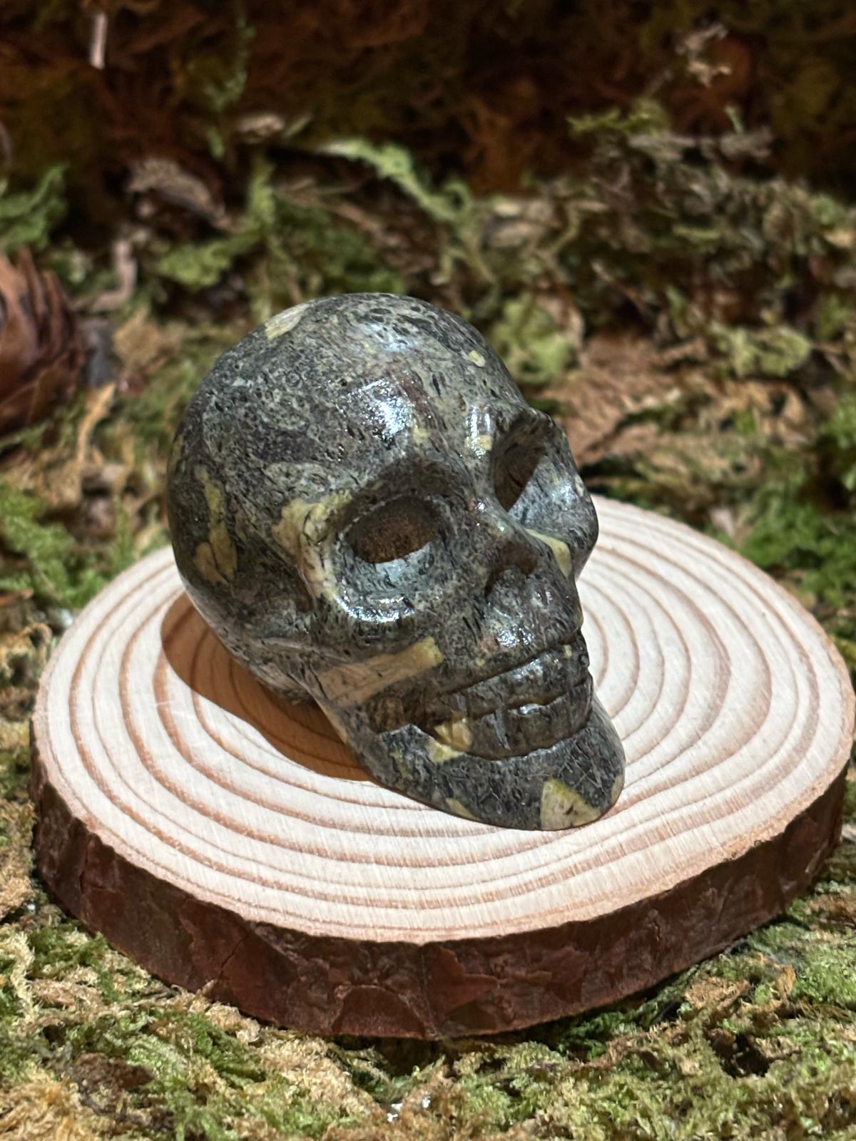 💀 Crâne en Jaspe Vert & Tourmaline Verte