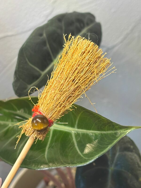 Un petit balai miniature, orné d’une perle en œil de tigre, pierre de protection et de courage, parfait pour balayer les énergies négatives.