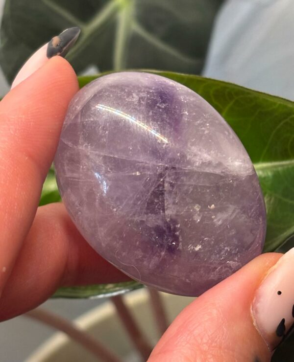 Un galet en améthyste, pierre d’apaisement et de sagesse spirituelle, parfaite pour calmer l’esprit et élever les énergies.