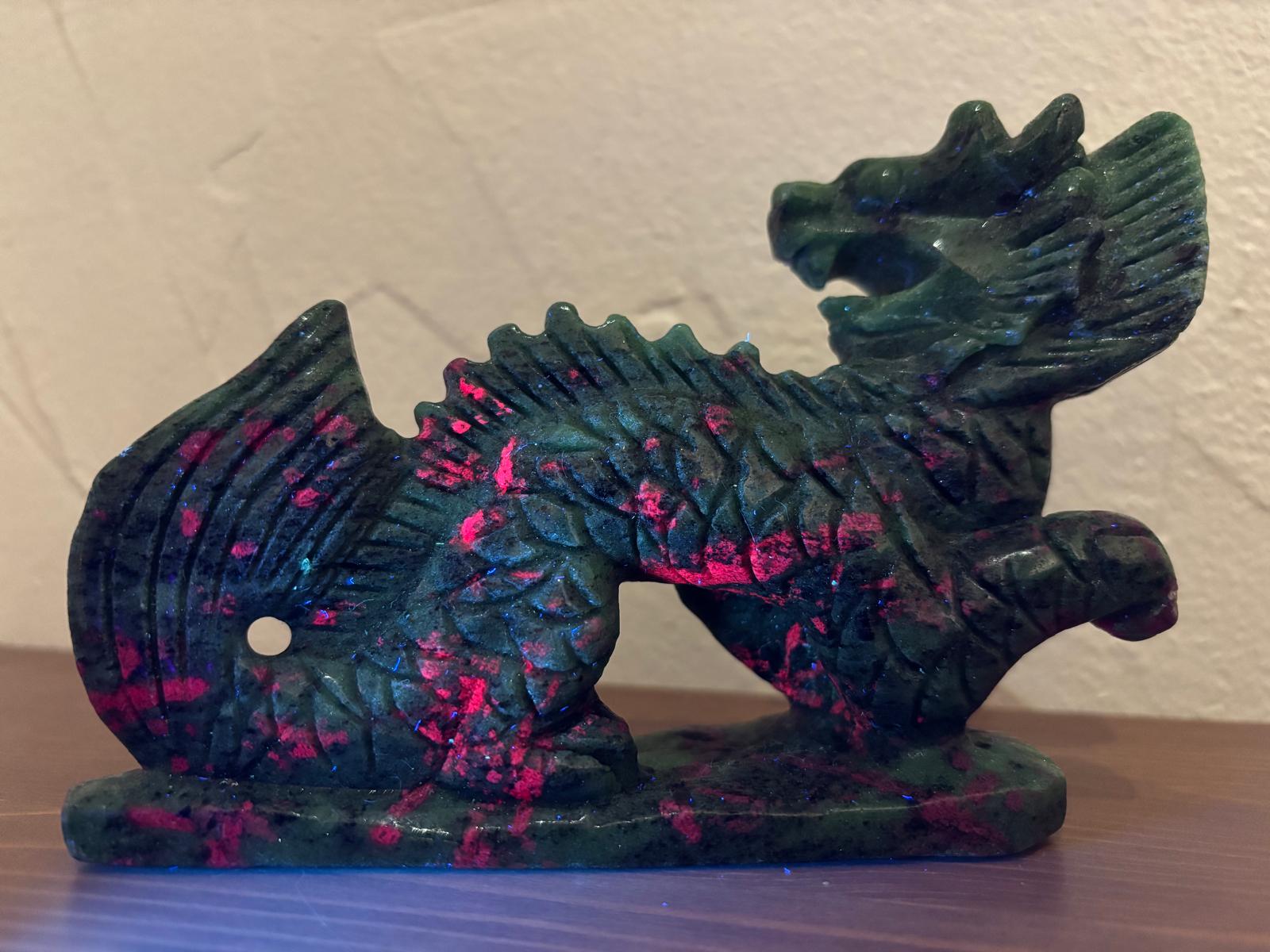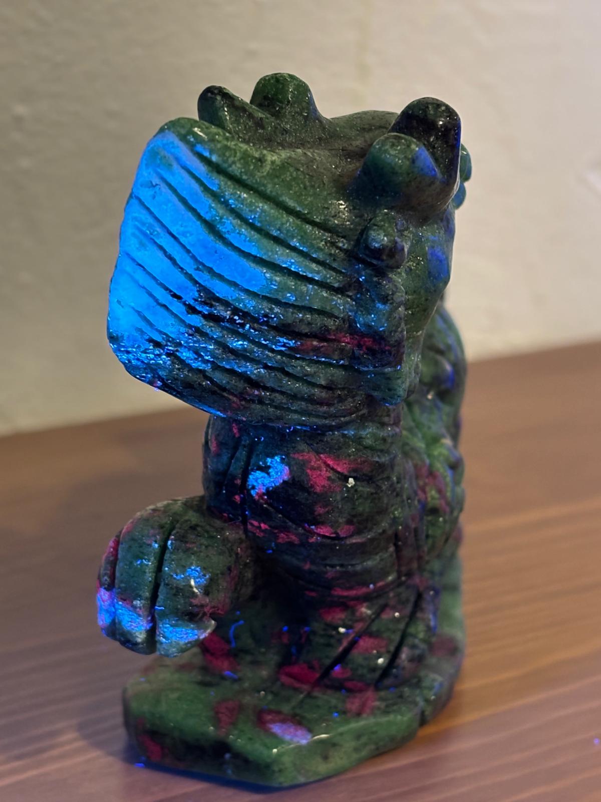 Cette pierre est réactive aux UV : sous une lumière ultraviolette, ses couleurs vibrantes se révèlent encore plus magiques, comme si elle cachait un secret venu d’un autre monde. ✨🌈
