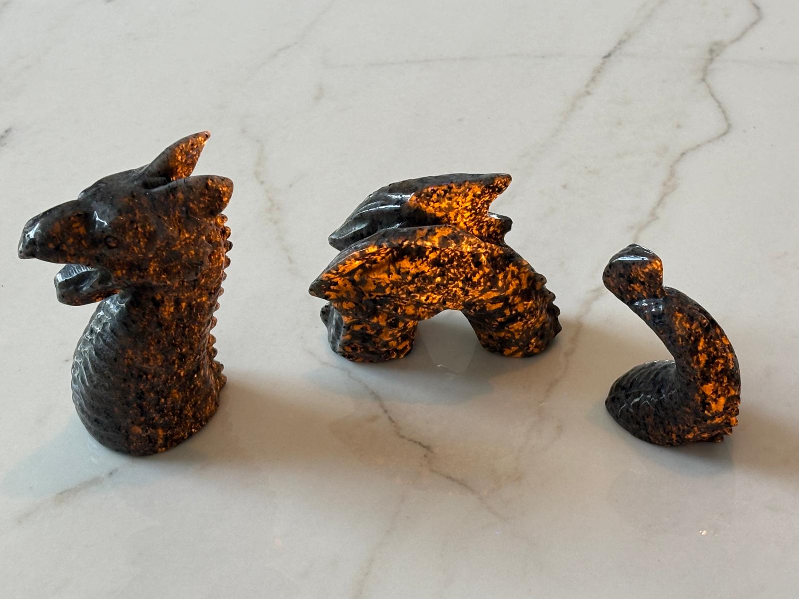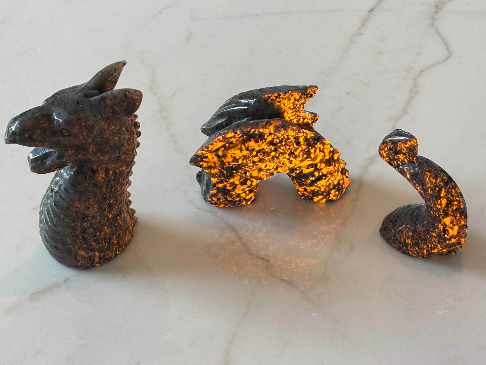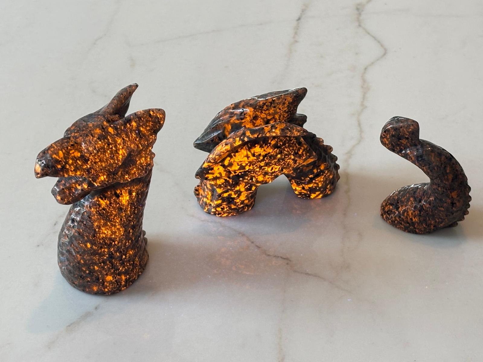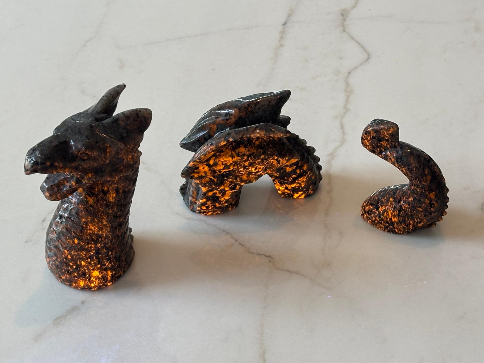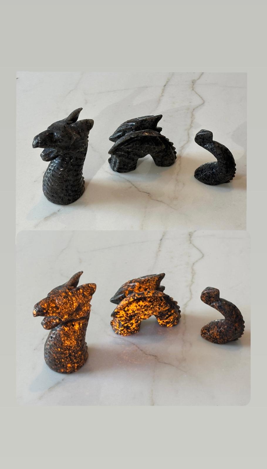 🐉 Ce dragon en trois parties semble tout droit sorti d’un royaume oublié… Réactif aux UV, il s’illumine de l’intérieur comme s’il portait un feu ancien en lui. Tu peux jouer avec sa forme et lui donner la pose qui te plaît : chaque disposition révèle une nouvelle aura, une nouvelle histoire. Une pièce mystique et puissante, entre lumière et légende. ✨