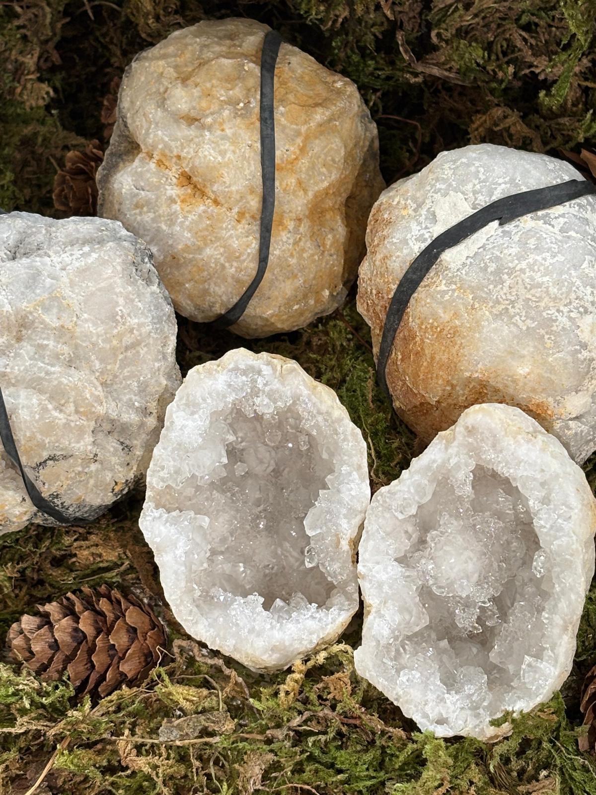 Si tu cherches un coin de pure énergie pour tes bijoux, tes pierres ou même tes plantes, ces géodes de cristal de roche sont parfaites ! Ouvrir l’une d’elles, c’est comme découvrir un petit sanctuaire secret rempli d’éclats de lumière.