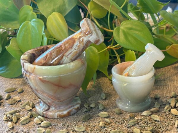 Ce mortier en calcite onyx t’aide à t’ancrer dans l’instant présent, à créer en conscience et à te relier aux énergies terrestres.