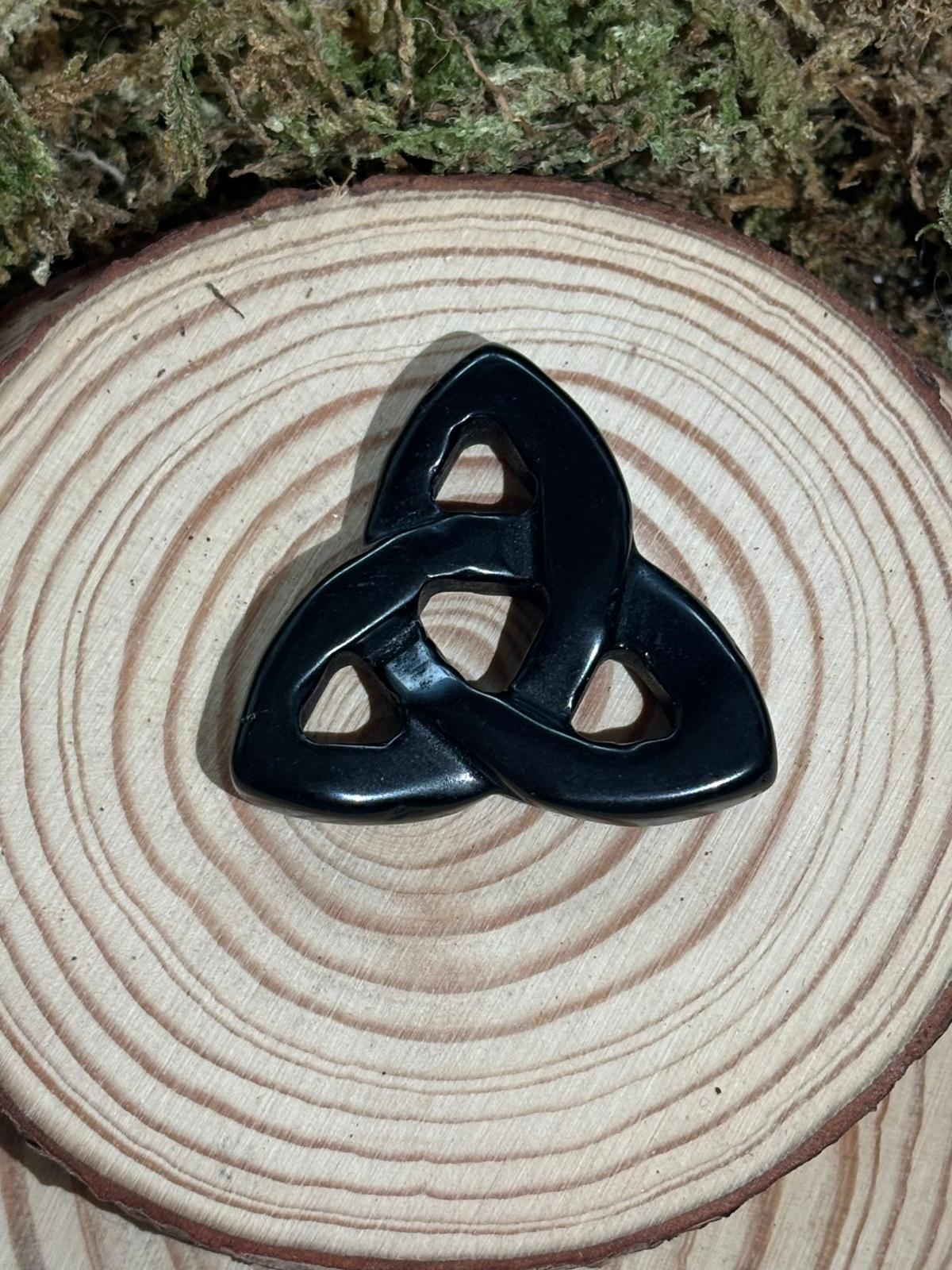 🔮 Symbole ancestral de l’union et de la protection, la triquetra – aussi appelée nœud celtique – incarne l’harmonie entre corps, esprit et âme. Associée à l’obsidienne noire, pierre d’ancrage et de bouclier énergétique, elle devient un talisman puissant à porter sur soi, à poser sur un autel ou à intégrer dans un rituel.