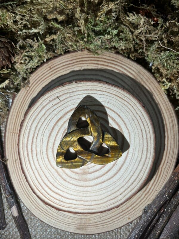 🔮 Symbole ancestral d’unité et de protection, la triquetra – aussi appelée nœud celtique – représente l’harmonie entre le corps, l’esprit et l’âme. Associée à l’Œil de Tigre, pierre de force intérieure et de protection, elle devient un véritable talisman contre les énergies négatives, tout en renforçant la confiance et la clarté d’esprit.