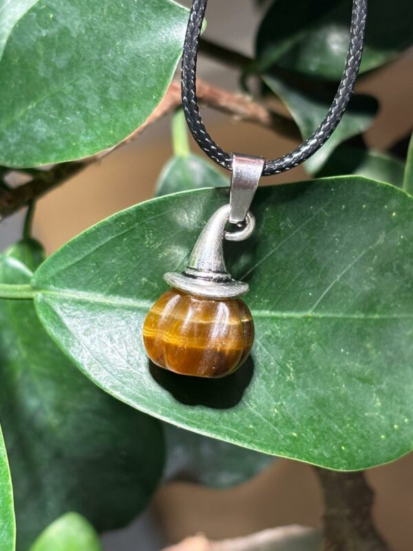 Pendentif Citrouille Sorcière, Œil de Tigre + Cordon