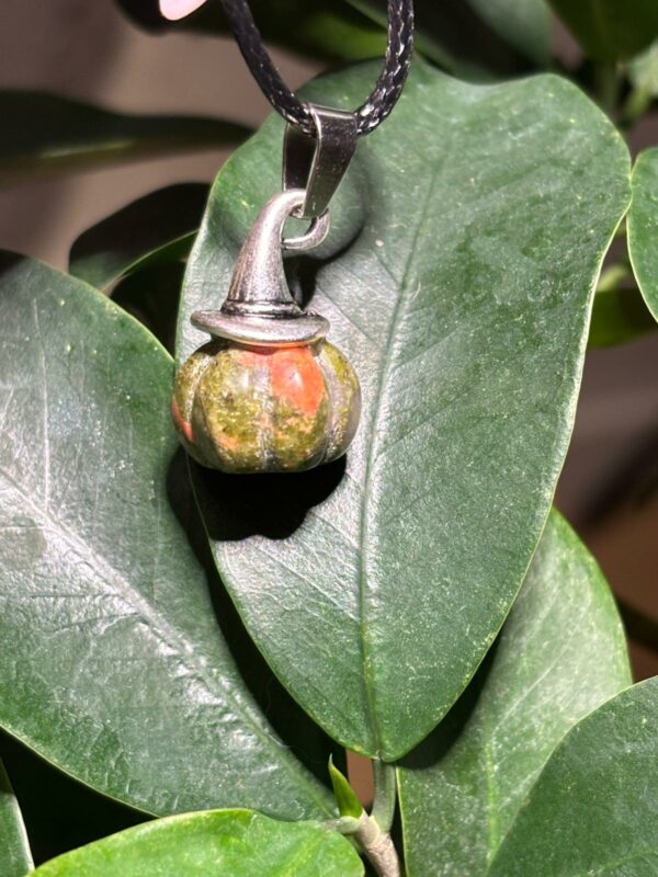 Pendentif Citrouille Sorcière, Unakite + Cordon