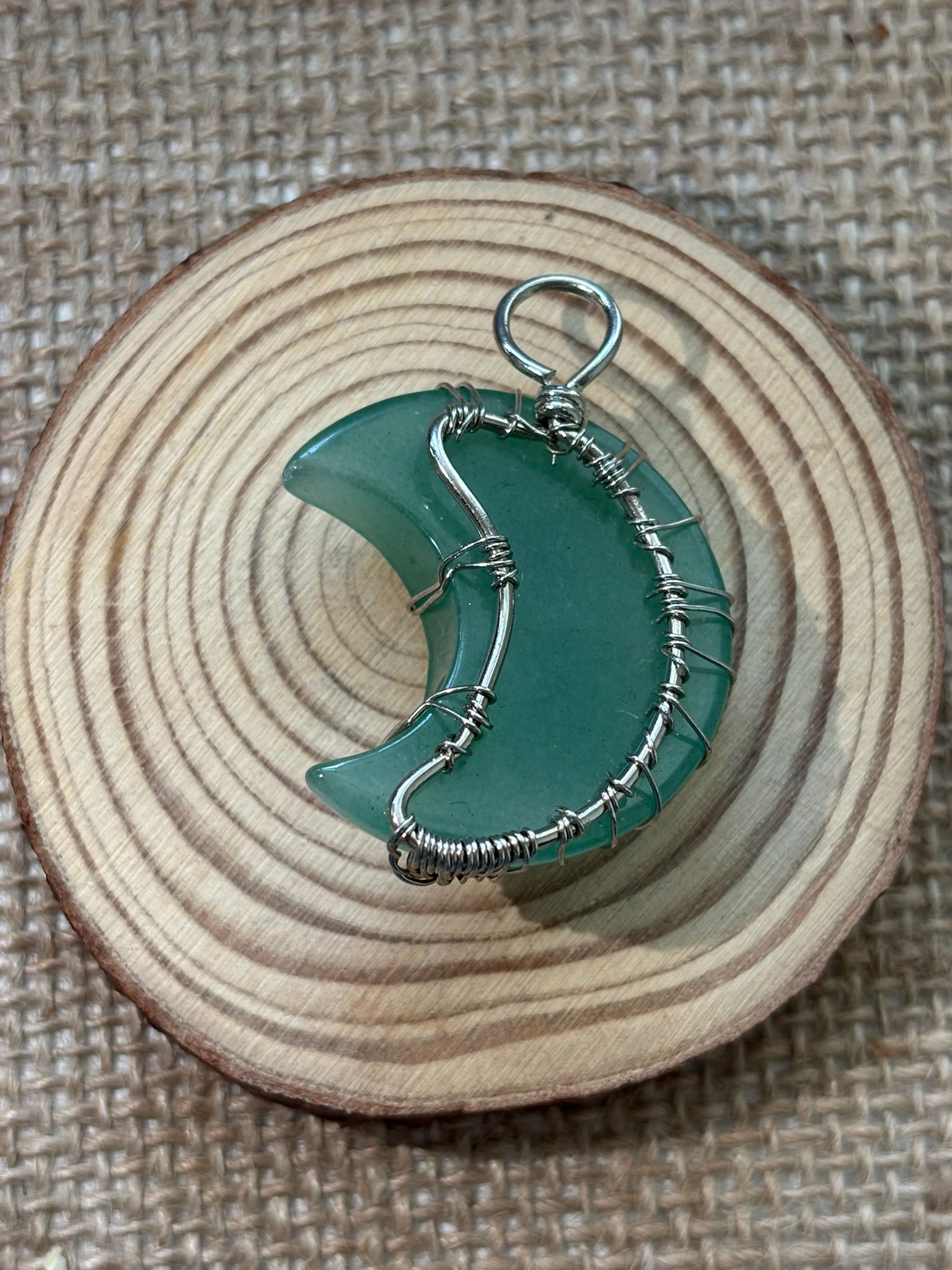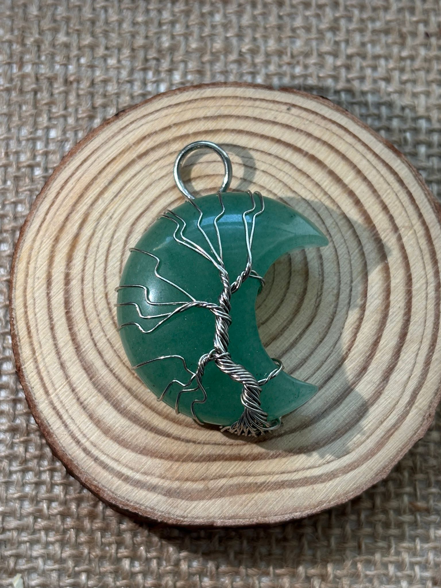 Pendentif Lune en Aventurine Verte – Arbre de Vie