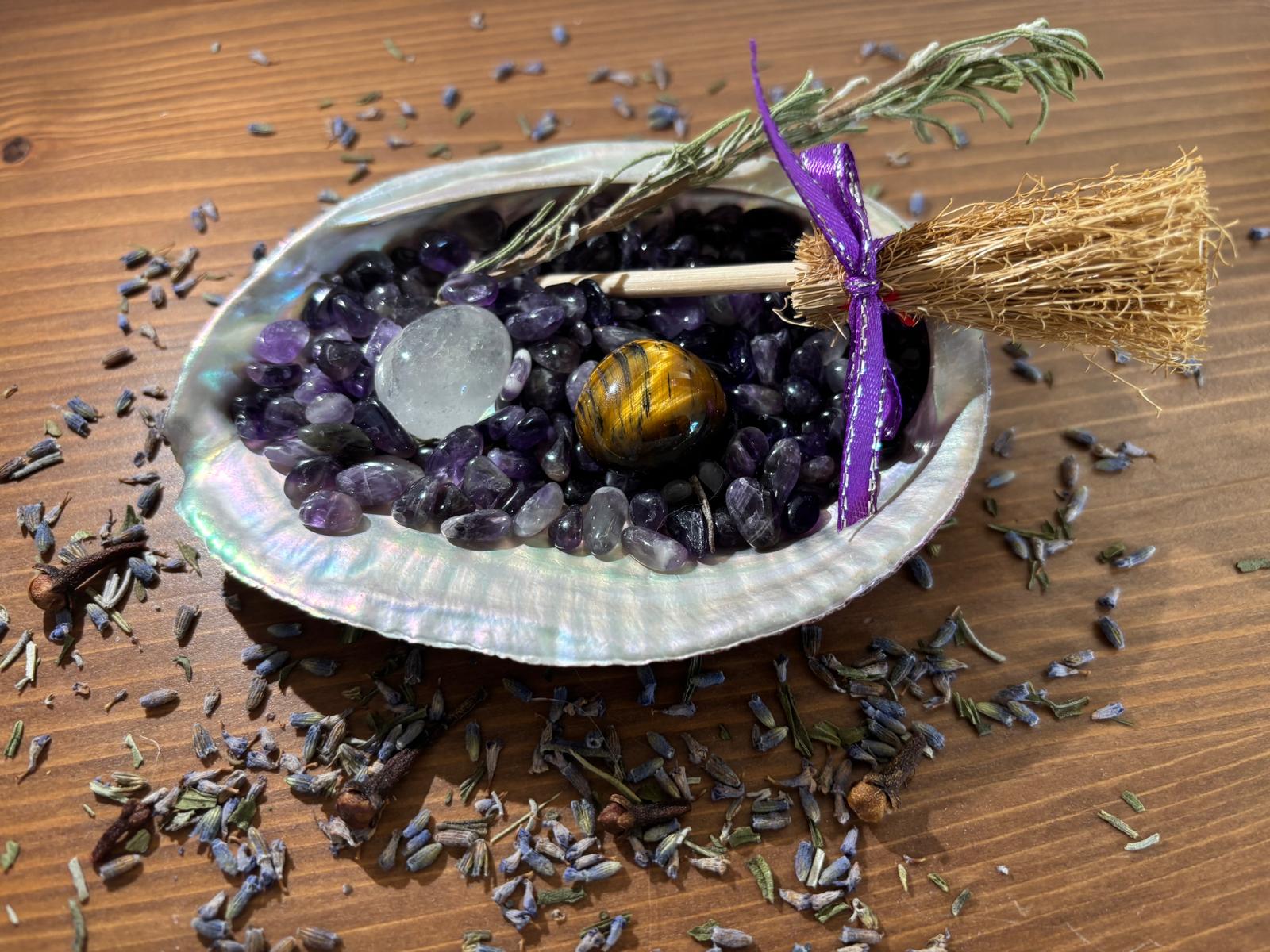 Mini balai de sorcière : Nettoyage symbolique des énergies stagnantes.