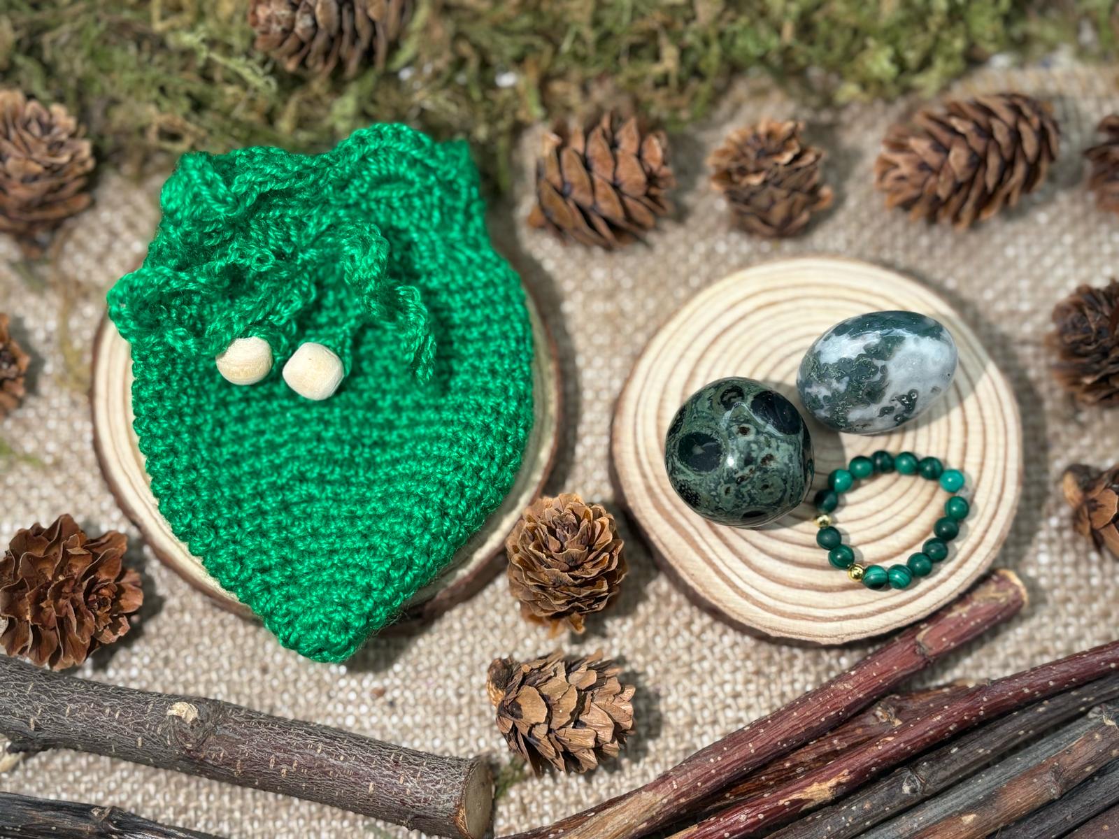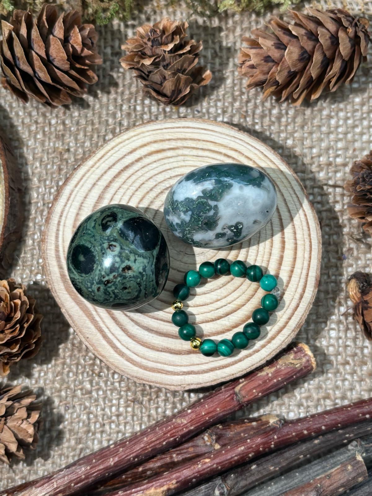 Pensé pour les sorcières vertes, les jardiniers du cœur, les protecteurs du vivant, il unit trois pierres puissantes, choisies avec soin pour leur magie végétale et ancestrale.