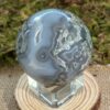 Sphère Agate Mousse Bleutée avec inclusions de Quartz + Support