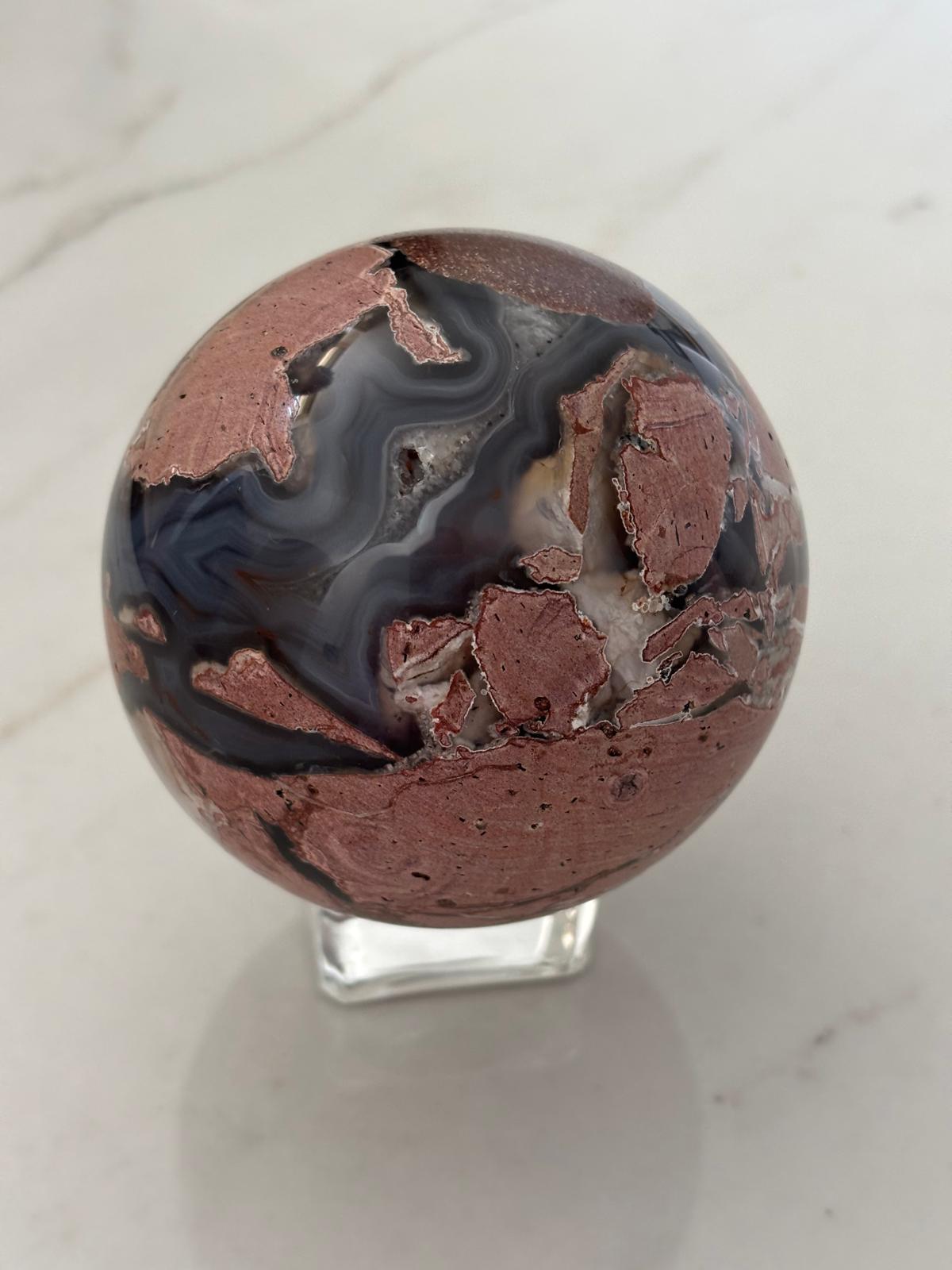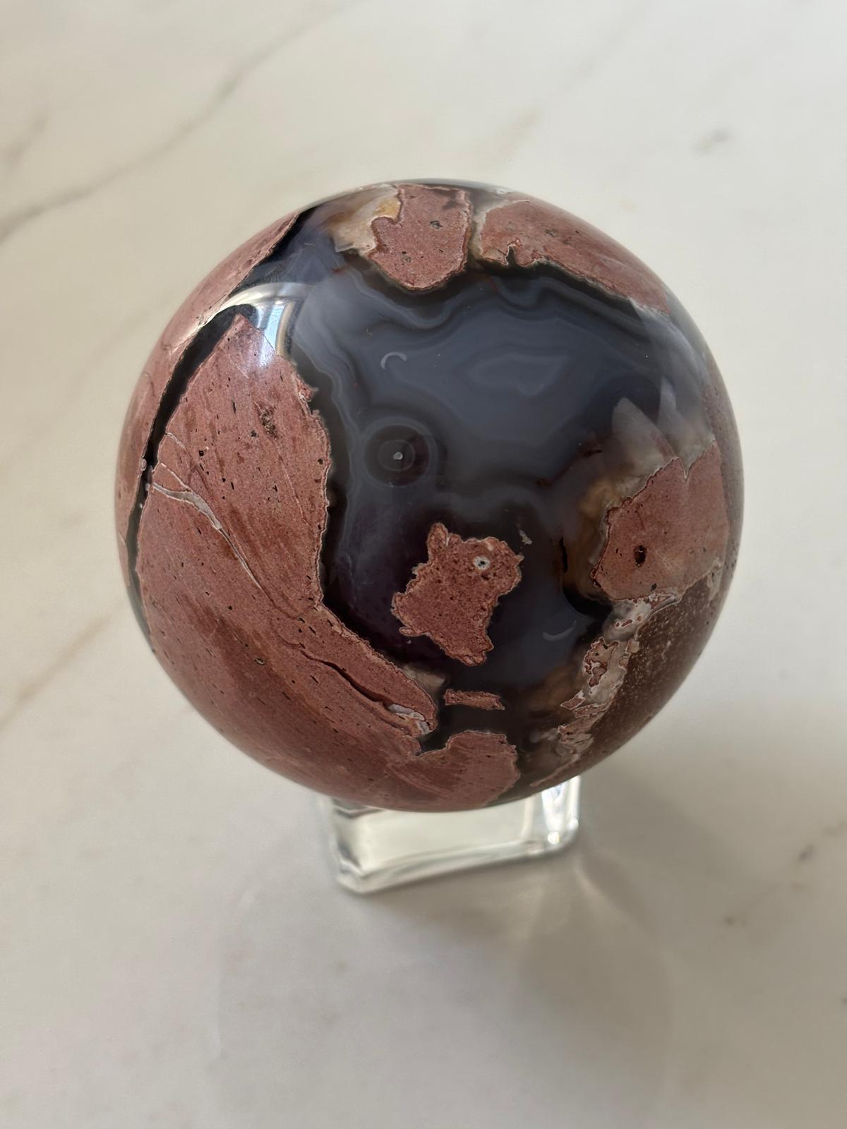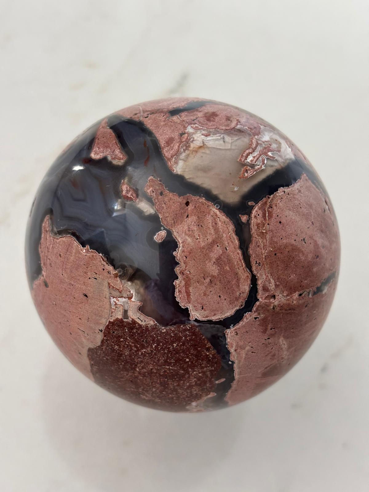Sphère en agate volcanique, agate rose et rhyolite