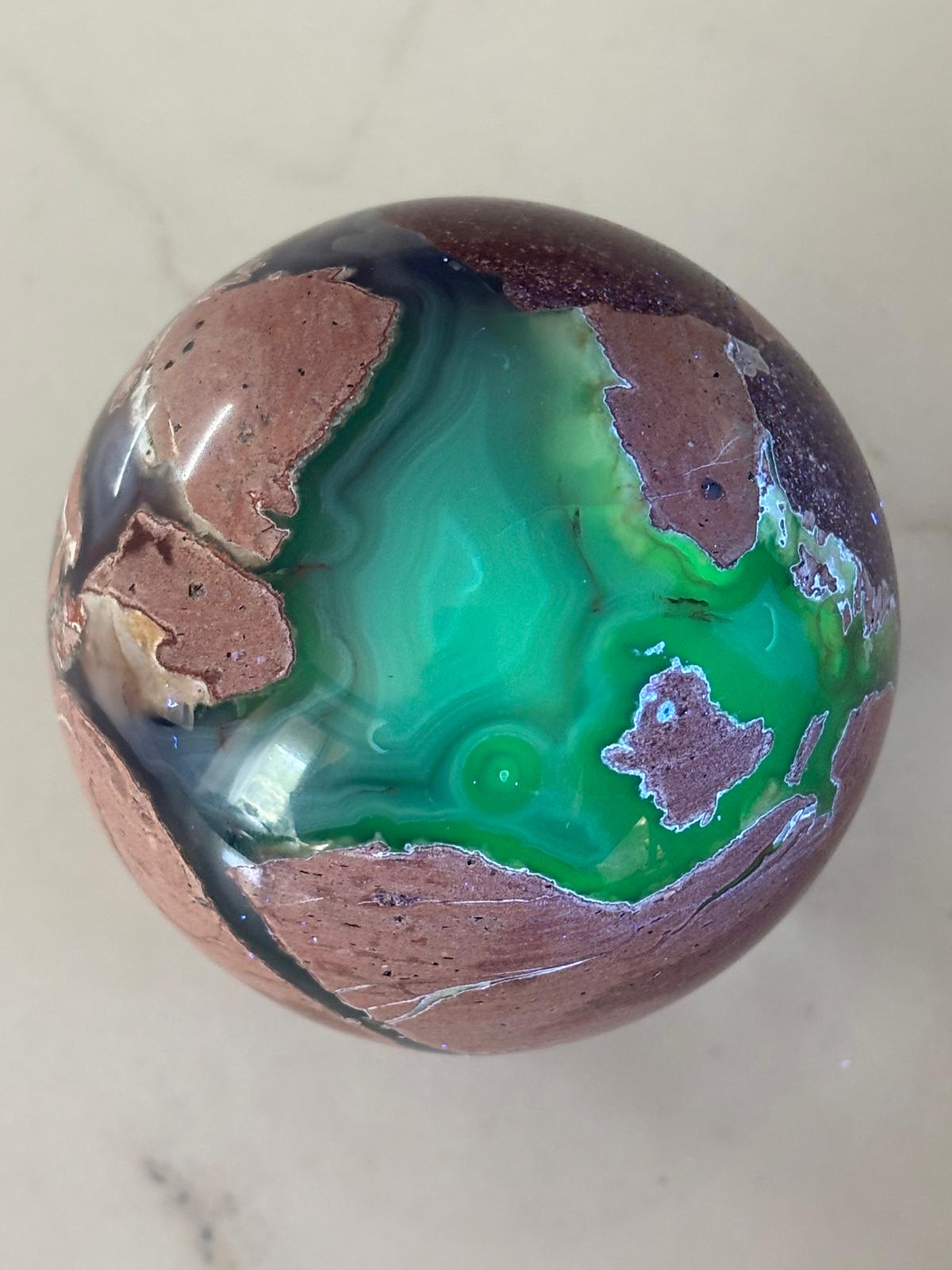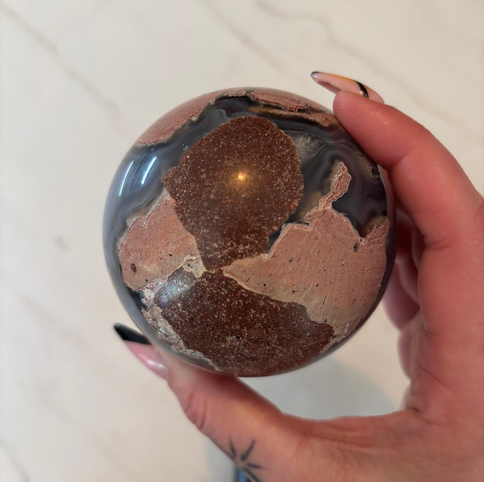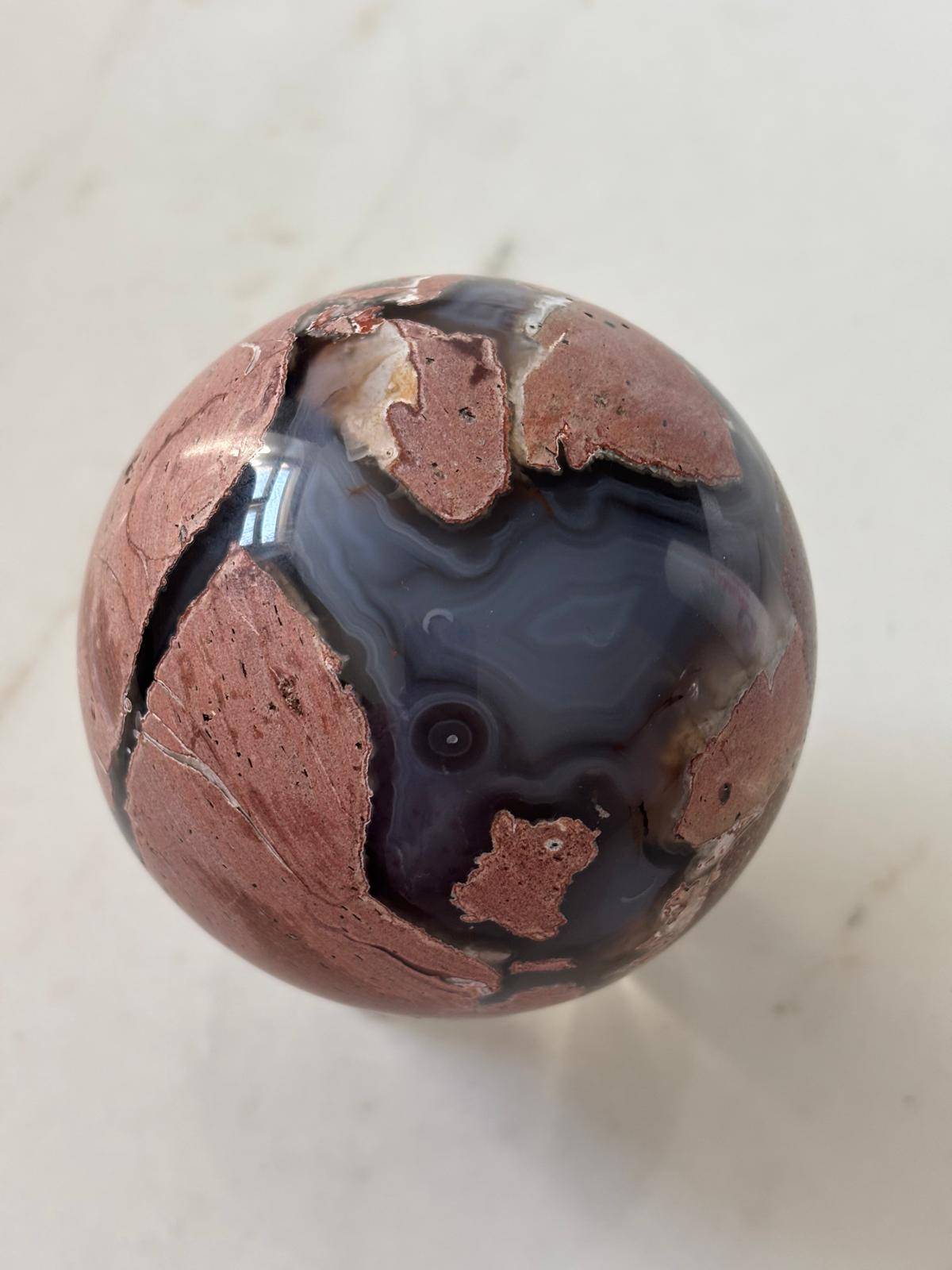 Sphère en agate volcanique, agate rose et rhyolite