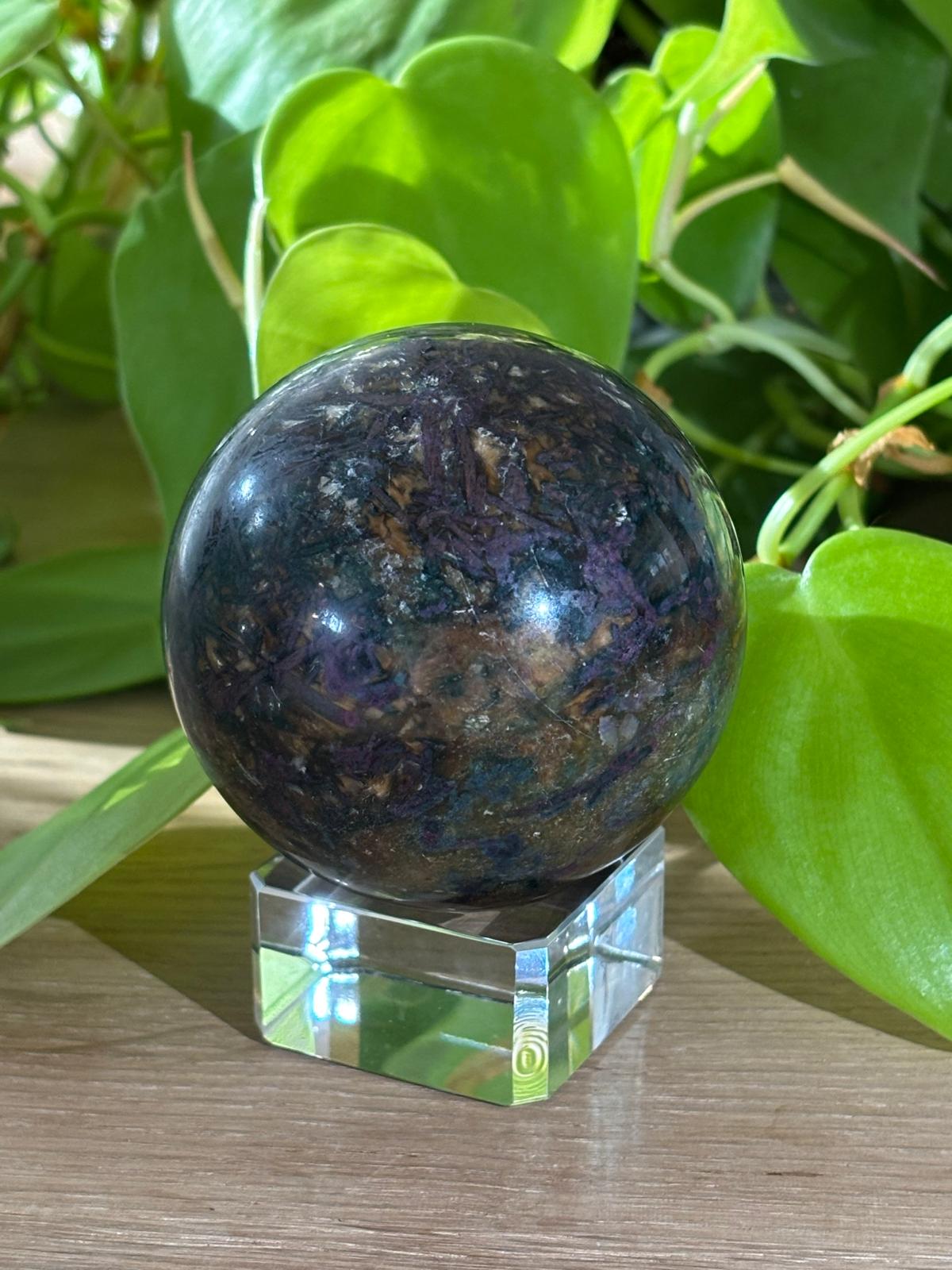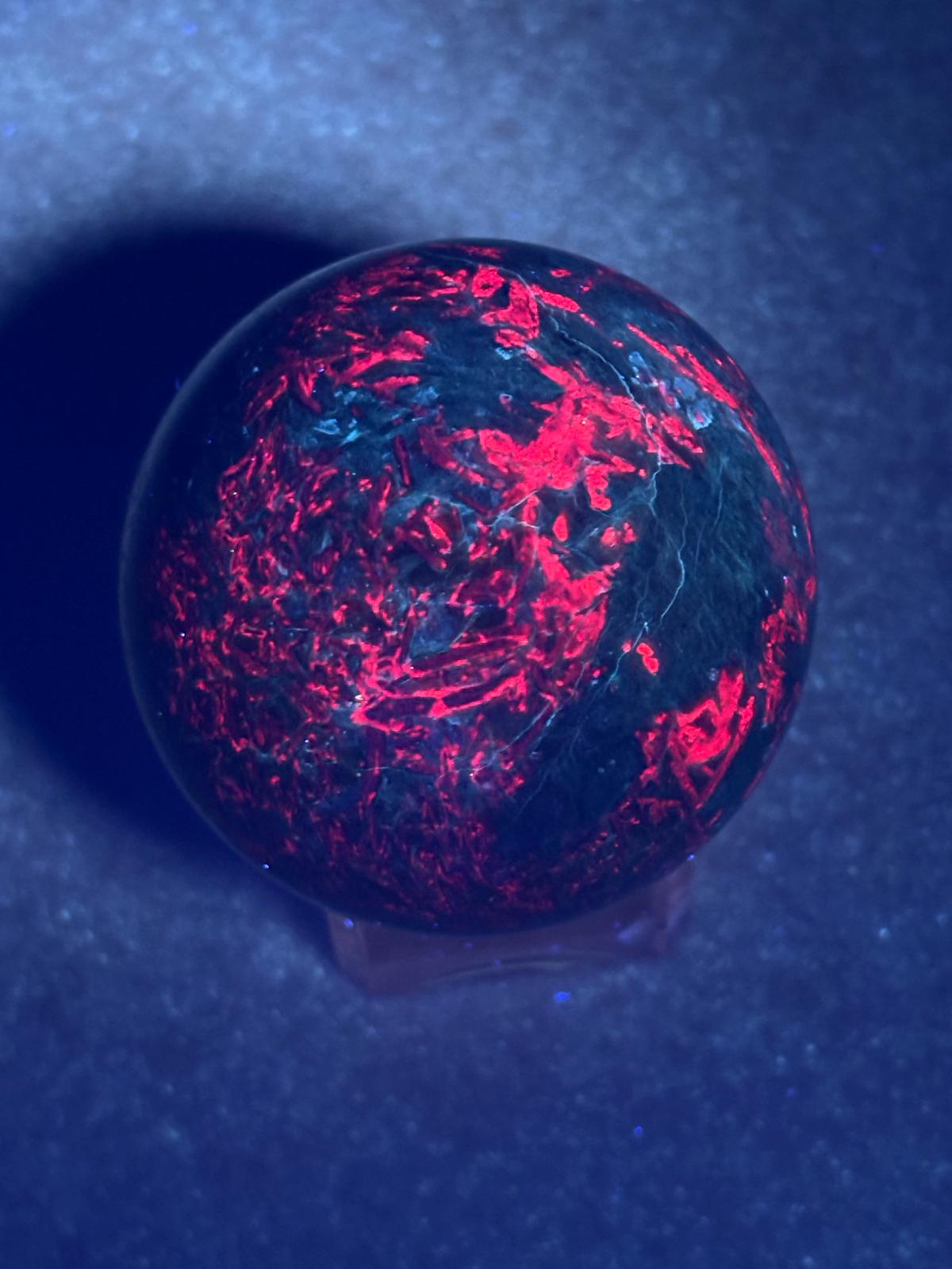 Sphère Cyanite & Rubis + Support, Réactive aux UV