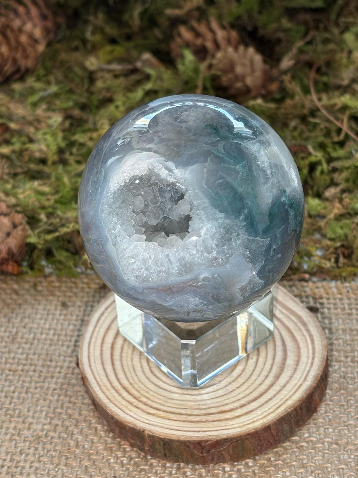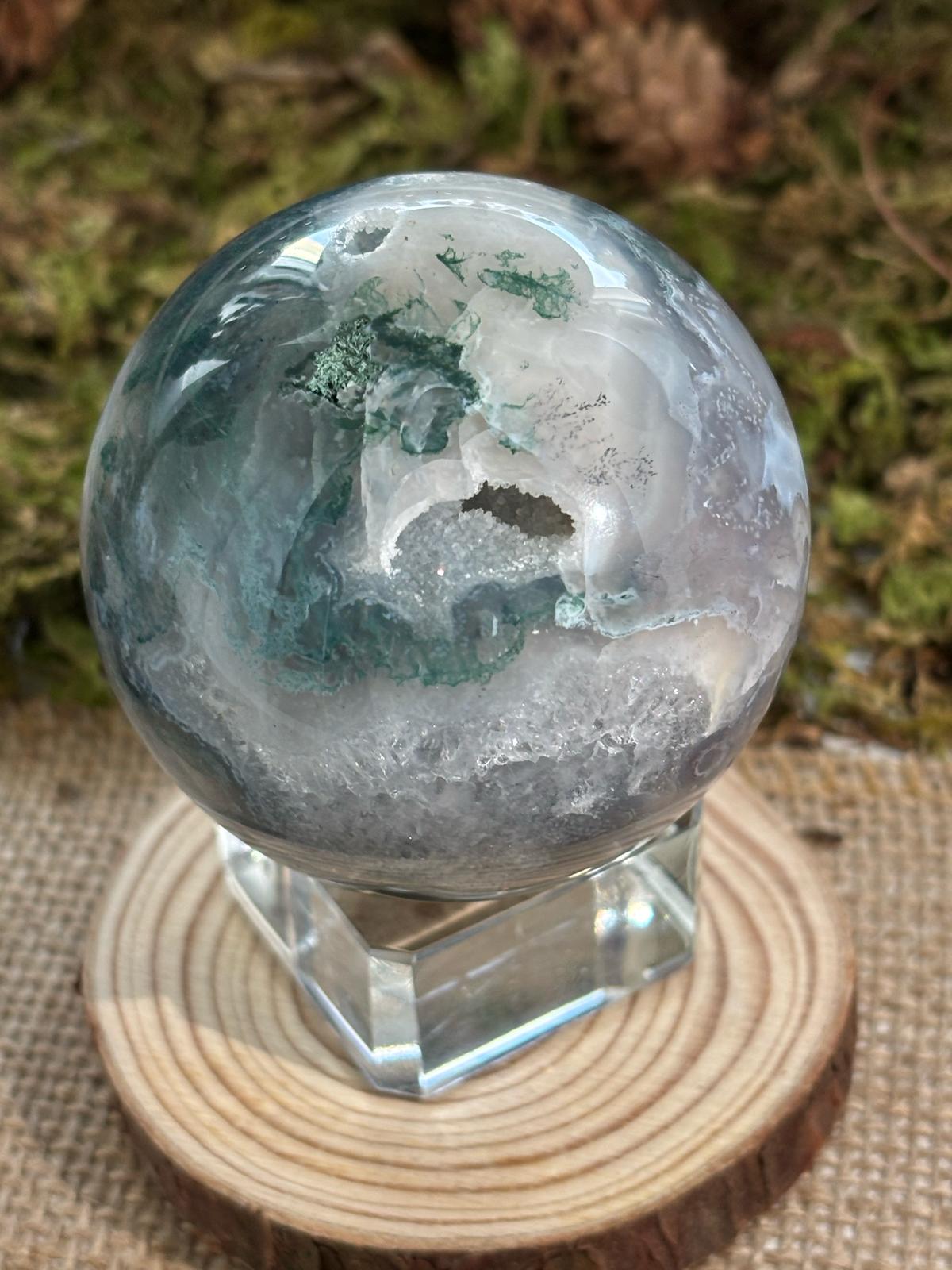 Sphère Agate Mousse (Bleutée, Violette, Verte) Druzy + Support