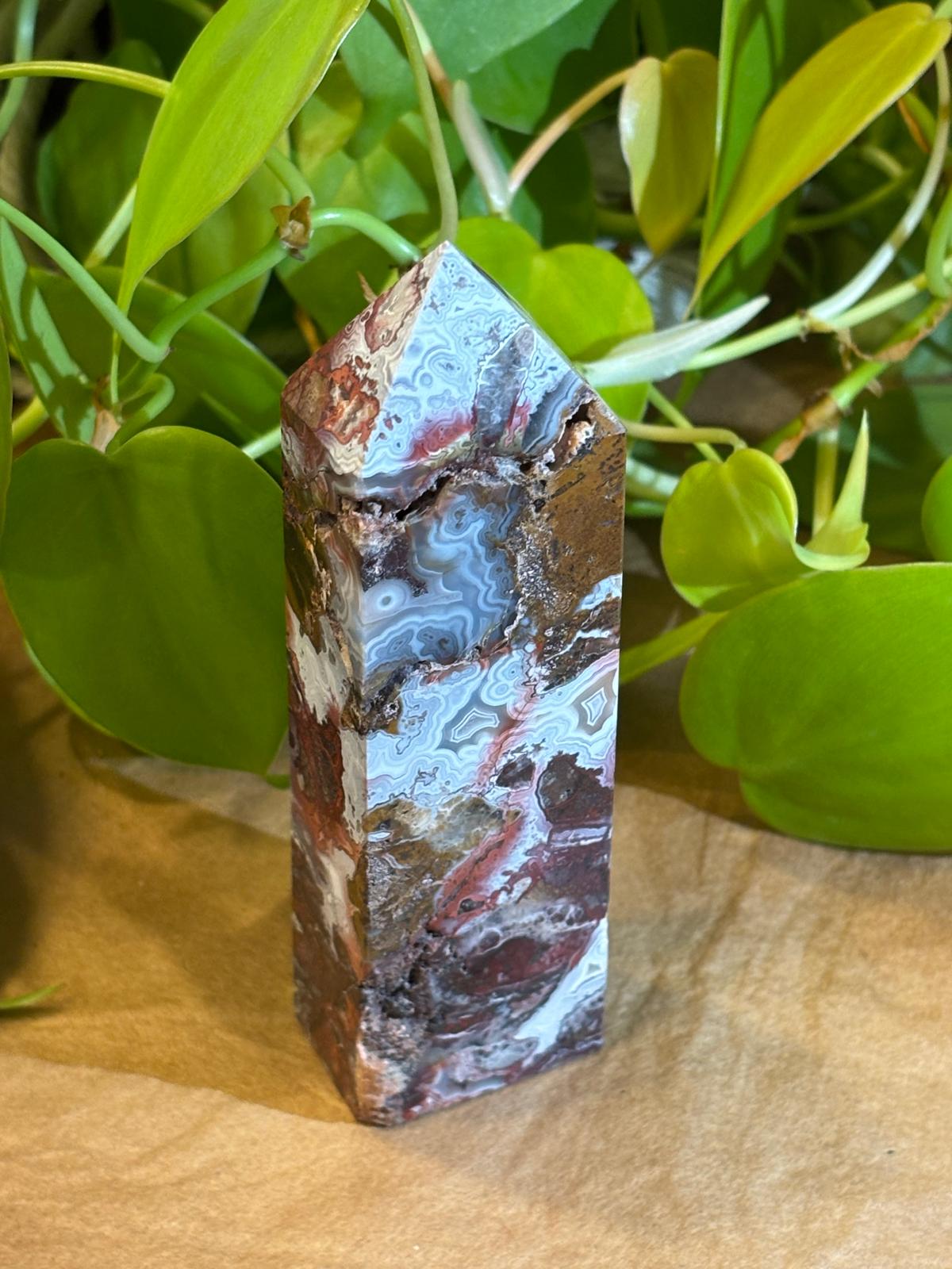 (En fonction des couleurs, l’Agate Mexicaine peut agir sur différents chakras)
