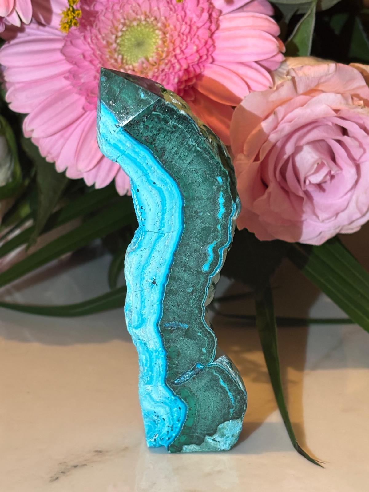 La chrysocolle avec malachite, c’est un duo de choc ! Elle te débarrasse des mauvaises vibes, t’apporte un shoot de joie et met de l’ordre dans ton esprit. Résultat ? Une paix intérieure digne d’un sage en méditation. 🌿