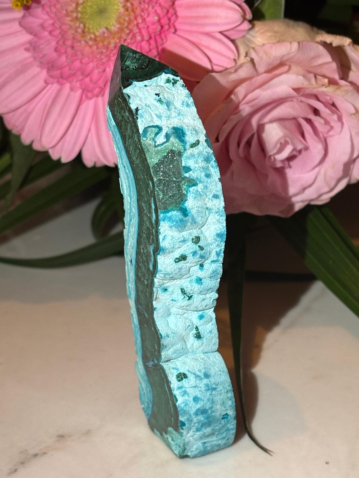 La chrysocolle était la pierre favorite de Cléopâtre, qui la portait comme un symbole de pouvoir et de paix. Elle est aussi utilisée pour apaiser les conflits et encourager des échanges harmonieux. Un bijou qui résonne avec l’harmonie intérieure et extérieure ! 💫